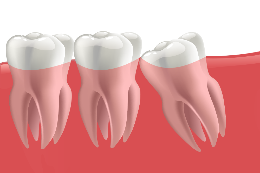 抜いていく方向と逆方向に向いて生えているため、難易度の高い抜歯になるケースもあります。