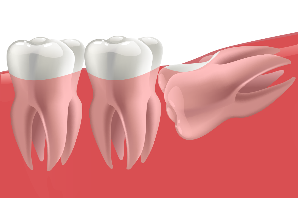 顎の大きさが小さく、生える場所を失った親知らずはさまざまな生え方をします。